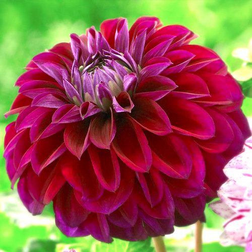 Жоржина Diva - королева осені! Темно-рожеві квіти зачаровують фіолетовим відливом. Він проявляється на сонці. Кожна пелюстка нагадує човник завдяки з'єднаним краям. Навіть не віриться, що ці жоржини не вирізані з паперу, а створені роками селекції. Так, Діва дивує! Це знахідка для вишуканого букета. Діаметр суцвіть - 10 см. Вони колишуться на прямих стеблах до 100 см заввишки. Інші сорти квітів жоржин шукайте в каталозі на сайті Яскрава Клумба.