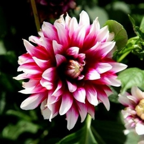 Жоржина низькоросла Verdi – чудова квітка виду Decorative dahlias. Декоративні з великими суцвіттями і яскравим листям, багаторічні жоржини є справжньою окрасою будь-якого саду, клумби або міксбордеру. Квітки у сорту Верді досягають 20 см, вони махрові, насиченого рубінового кольору з білими мазками на кінчиках. Прекрасні біколори чудово виглядають в зрізі і на кущі. Бордюрні низькорослі жоржини будуть радувати вас кожен рік своїм цвітінням, досить забезпечити їм належний догляд.