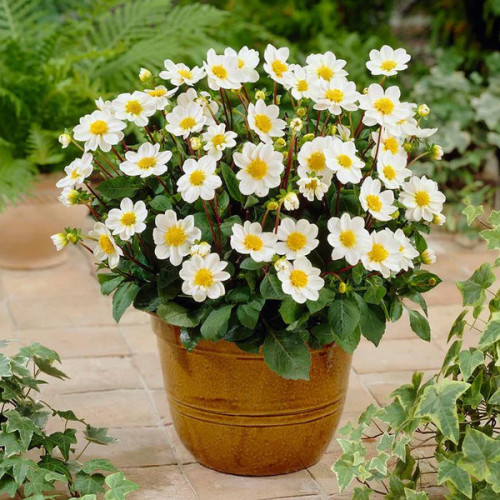 - висота куща жоржини Topmix White досягає 45-50 см, що робить її ідеальним вибором для горщикового вирощування або створення низькорослих бордюрів;