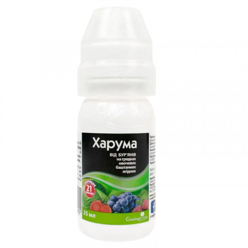 Харума 25 мл – це високоефективний системний гербіцид вибіркової дії, призначений для боротьби з однорічними та багаторічними злаковими бур'янами на посівах овочевих, баштанних та технічних культур. Завдяки діючій речовині хізалофоп-П-етил, препарат швидко поглинається листям бур'янів і розноситься до точок росту, блокуючи синтез ліпідів. Це призводить до повної загибелі як надземної частини, так і кореневої системи злаків, що запобігає їхньому повторному проростанню. Харума демонструє відмінну селективність, не пригнічуючи культурні рослини (картоплю, томати, моркву, буряк, полуницю), що дозволяє використовувати препарат на будь-якій стадії їхнього розвитку.