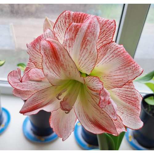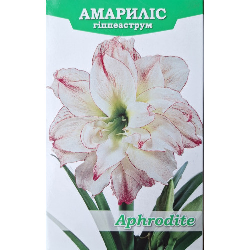 Гіпеаструм Aphrodite (Афродіта) привертає увагу великими махровими квітками, які захоплюють дух палітрою біло-рожевих відтінків. Кожна окрема пелюстка прикрашена чарівним рожевим рум'янцем, який поглиблюється до країв, створюючи приголомшливий візуальний контраст на фоні зеленого центру. Цибулина гіпеаструма Афродіта в подарунковій упаковці стане відмінним подарунком усім любителям садівництва.
