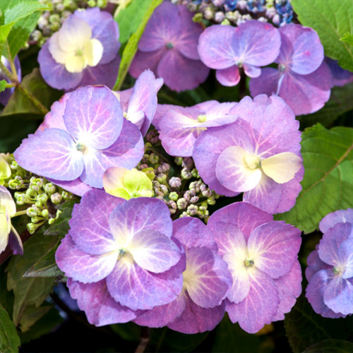 Гортензія великолиста Blueberry Cheesecake (Блюберрі Чізкейк) - це новий гібридний сорт гортензії з компактною формою куща та з ефектними фіолетовими квітами. Після того як квіти зів'януть, листя займає центральне місце, стаючи яскраво-червоним в жовтні. Це додає осіннього колориту саду. Цей невеликий декоративний кущ є відмінним рішенням для контейнерного вирощування, така композиція стане чудовою прикрасою балкона або тераси на даху, а також патіо. Підходить для використання в якості зрізаних квітів, витримуючи до двох тижнів у вазі, а засушені квіти також відмінно підходять для сухих букетних композицій.