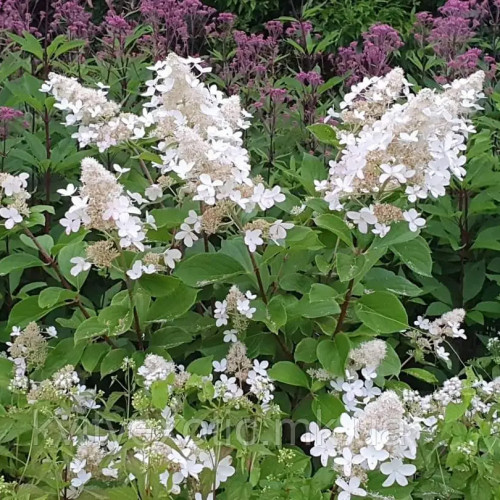 - суцвіття: складаються з великих білих квіток, зібраних у пишні волоті розміром до 45 см;