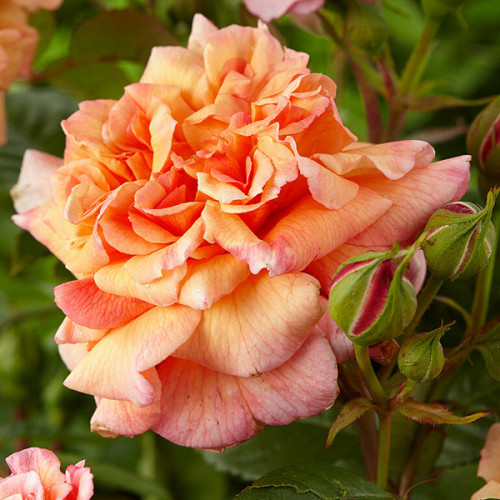 - забарвлення: пелюстки абрикосового, рожевого відтінку, зворотня сторона трохи темніша, на одному стеблі утворюється відразу 5-10 бутонів, на якому до 50 пелюсток;