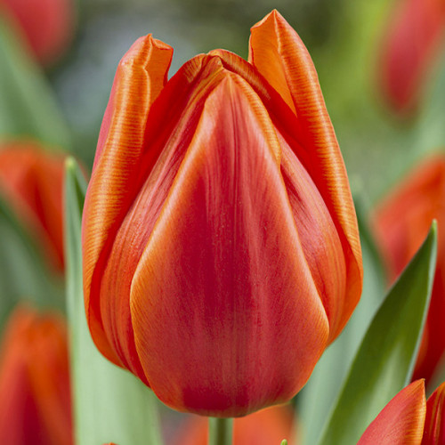 Яскравими відтінками опромінить вашу клумбу тюльпан класу Тріумф сорту Orange Cassini вже до кінця березня. Ця квітка користується популярністю у садівників завдяки своїм насиченим оранжево-червоним, келихоподібним бутонам із жовтою облямівкою по краях пелюсток. Тюльпани класу Тріумф володіють міцним стеблом і великими темно-зеленими листками біля основи рослини. Ці особливості допомагають квітці зберігати стійкість і захист бутона від несприятливих погодних умов. Тюльпан сорту Orange Cassini стане центром уваги на вашій клумбі, а також буде чудовою прикрасою будь-якого вашого свята при формуванні букета.
