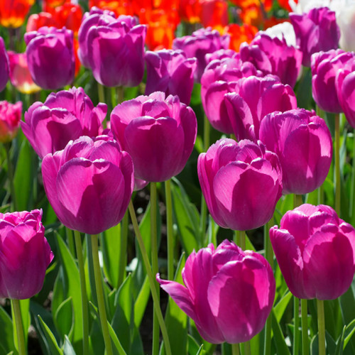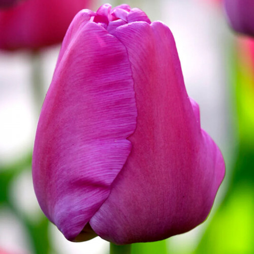 Тюльпан Дарвіна Purple Pride - це сорт, створений щоб додати ландшафту глибини та шляхетного шику. Його назва "Пурпурова гордість" повністю виправдовує себе: величезні келихи забарвлені у рідкісний лавандово-фіолетовий колір, який змінює свої відтінки залежно від освітлення. Міцне високе стебло здатне витримати будь-які примхи погоди, зберігаючи горду поставку квітки. Пелюстки мають шовковисту текстуру, що надає бутонам особливого об'єму та візуальної м'якості. Пурпурний відтінок Purple Pride ідеально контрастує з білими або жовтими весняними квітами, створюючи динамічні та яскраві садові композиції. Обравши цей гібрид, ви отримуєте не просто квітку, а символ весняного відродження, який привертатиме захоплені погляди кожного перехожого. Це бездоганний вибір для створення ефектних живих огорож вздовж доріжок або центральних елементів на великих клумбах.