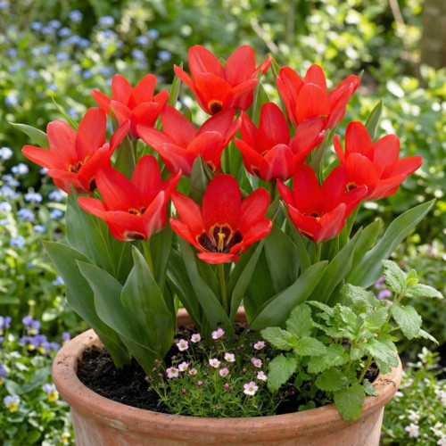 Тюльпан Грейга Job's Memory – це справжня знахідка для тих, хто шукає не просто квітку, а виразний акцент для свого весняного саду. Його головна родзинка полягає у фантастичному поєднанні великих яскравих бутонів та надзвичайно декоративного листя з характерними пурпуровими штрихами. Завдяки низькому зросту та неймовірній природній стійкості, цей сорт одним із перших зустрічає весну, не боячись різких поривів вітру чи примхливого дощу. Пелюстки мають теплий сонячний відтінок з ефектним вогняним центром, що створює відчуття затишку та світла навіть у похмурий день. Job's Memory ідеально підходить для переднього плану квітників та кам’янистих гірок, де його деталізована краса розкривається на повну силу. Вибір цього сорту свідчить про чудовий смак садівника, який цінує гармонію між класичною формою та унікальними природними візерунками. Це надійна та дуже вдячна рослина, яка щороку перетворює вашу клумбу на професійну ландшафтну експозицію.