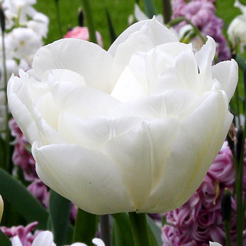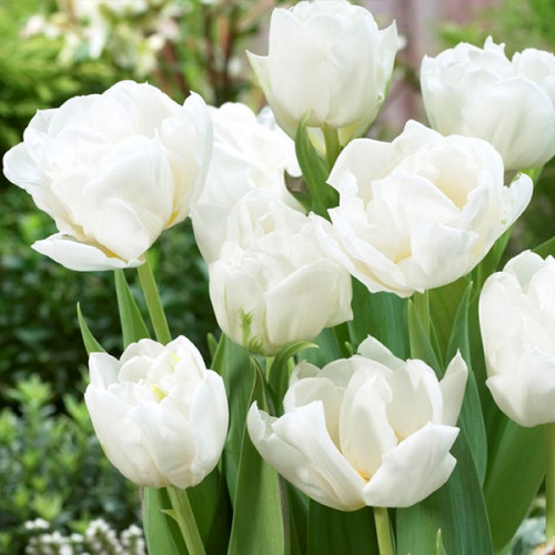 Підживлення: на початку вегетації можна внести легке азотне добриво, потім перед бутонізацією фосфорно-калійне. Після цвітіння квітконос видаляють, листя залишає до їхнього природного пожовтіння, щоб цибулина набрала енергію для наступного сезону. Цей сорт особливо виграшно виглядає групами - наприклад, по 10-15 цибулин на 1 м² створюють ефект "моря" білих махрових чаш.