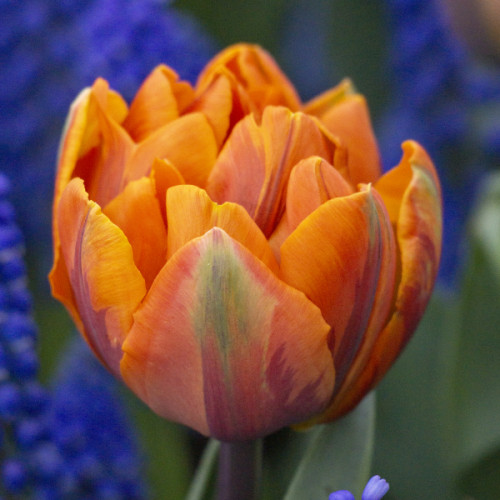 Orange Princess – ідеальний сорт для яскравих весняних композицій та ошатних бордюрів. Особливо ефектно виглядає на тлі синіх мускарі та білих нарцисів. У зрізанні відкривається повільно і довго зберігає свіжість.