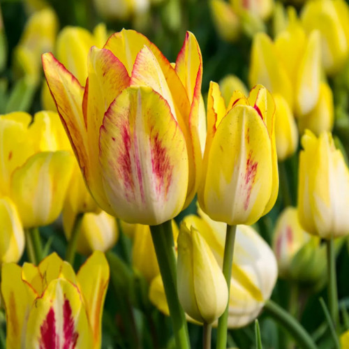 Sunshine Club – яскравий представник мультифлорних тюльпанів, який формує цілий букет з однієї цибулини. Кожен кущ дає від 3 до 5 бутонів, що розкриваються в елегантні квітки з життєрадісним забарвленням: лимонно-жовті пелюстки з теплим кремовим відтінком створюють відчуття весни та радості. Завдяки компактним розмірам, високій декоративності та рясному цвітінню, Sunshine Club відмінно підходить для посадки в бордюрах, вазонах, а також для видовищного зрізування.