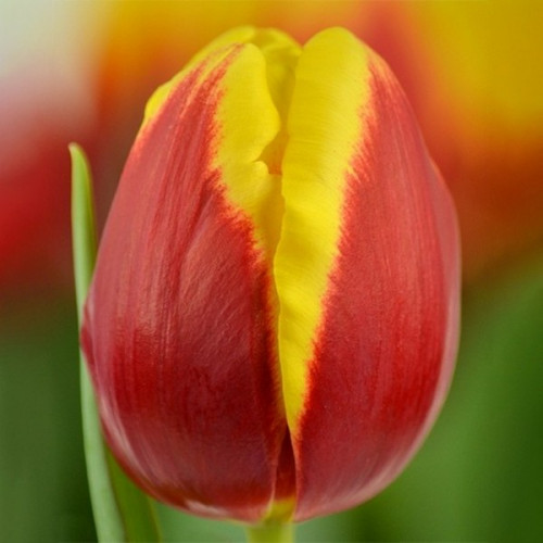Якщо ви хочете, щоб ваш садок буквально спалахнув яскравими фарбами на початку весни – тюльпан Denmark саме той сорт, що потрібен! Його контрастне забарвлення вражає з першого погляду: насичено-червоні пелюстки з яскравою жовтою центральною смугою ніби вирізані з полум'я. Це ефектне поєднання не просто тішить око – воно піднімає настрій і робить навіть найскромнішу клумбу центром уваги. Сорт належить до групи Тріумф, відомої своєю надійністю, стійкістю до капризів весни та красивою класичною формою квітки.