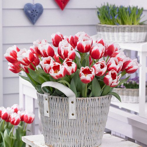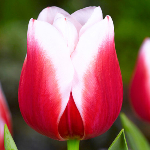 Якщо вам до вподоби чіткі колірні лінії та гармонія в композиціях – тюльпан Dutch Design стане справжньою окрасою весняної клумби. Цей сорт із групи Тріумф відрізняється класичною формою бутона та ефектним забарвленням: насичений червоний колір у нижній частині пелюсток переходить у ніжний білий по краях. Такий контраст виглядає свіжо, яскраво і водночас вишукано.