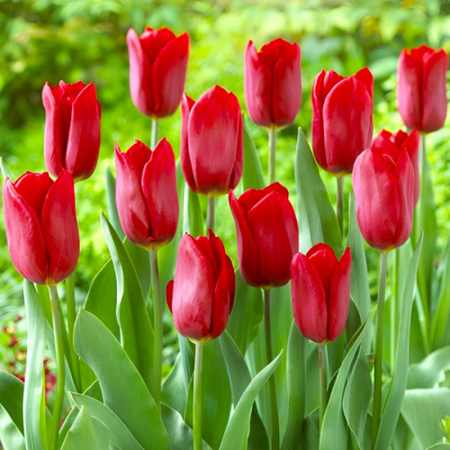 Strong Love – сорт, у якому чуттєвість та краса поєднуються в одній квітці. Його насичено-червоні пелюстки з яскравою малиновою глибиною виглядають благородно та ефектно. Це класичний тюльпан групи Тріумф – з правильною формою бутона, міцним квітконосом та неймовірною стійкістю. Він чудово тримається у зрізанні і довго зберігає декоративність у саду, навіть за мінливої весняної погоди.
