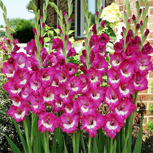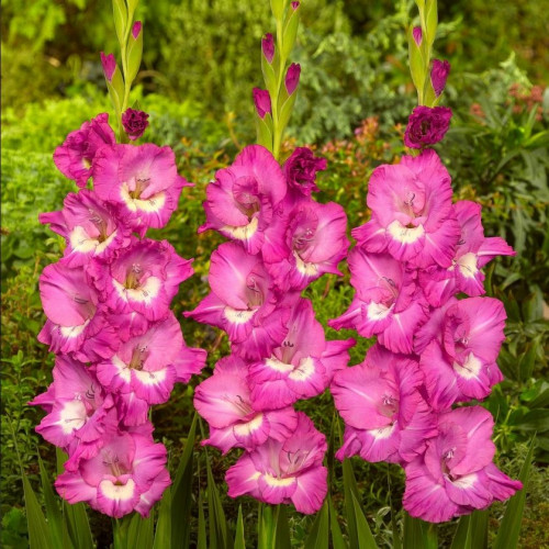 Гладиолус Rhapsody in Blue (Рапсоди ин Блю) – крупноцветковый пурпурно-лиловый сорт. Лепестки ярких цветков – украшены гофрированным краем, серединка – белая. В момент цветения сорт наиболее эффектно смотрится при посадке — нескольких луковиц группой по 7-10 растений.
