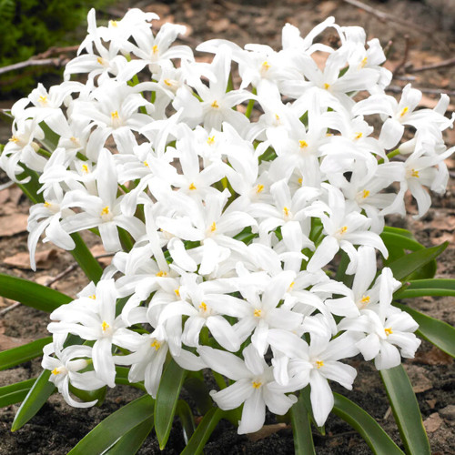 Хионодокса Luciliae Alba – изысканный и утончённый сорт, который открывает садовый сезон одним из первых. Неслучайно её называют «снежной звездой»: нежные белые цветы появляются ещё тогда, когда на земле лежат остатки снега. Их чистый окрас создаёт эффект свежести и делает участок более светлым и праздничным. Эта культура быстро завоёвывает симпатии садоводов, ведь она неприхотлива, устойчива и год от года образует всё более плотные куртинки.