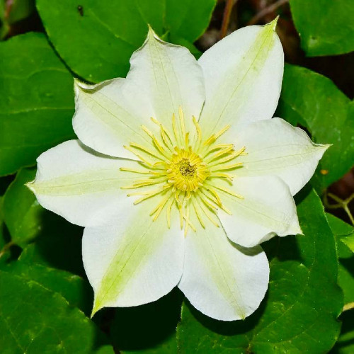 Клематис Moonlight (Yellow Queen) или Мунлайт (Йеллоу Квин) заслуживает быть в центре внимания самых взыскательных цветоводов. У него два альтернативных названия: Лунное Сияние и Желтая Королева. В обоих прослеживается символизм, поскольку белоснежно-кремовые с желтыми серединками действительно походят на светящуюся в ночном небе Луну и выглядят при этом по-королевски красиво. Их очень много, они плотно покрывают большой площадь лианы, а первые бутоны появляются практически у основания растения.