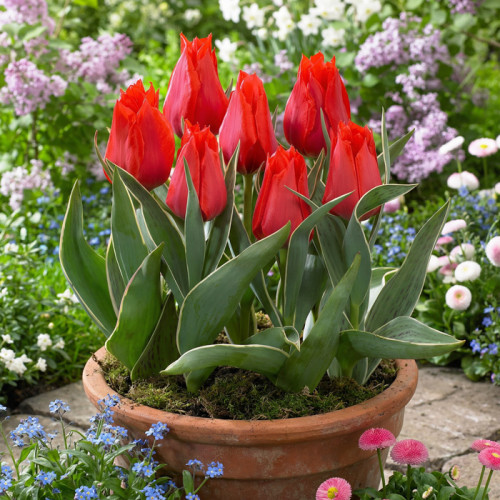 Тюльпан Грейга Rob Verlinden – это выбор тех, кто хочет видеть первое цветение уже в первые теплые дни марта. Этот сорт ценят не только яркие цветы, но и чрезвычайно декоративные листья: они имеют выразительные темные штрихи и полосы на сизо-зеленом фоне, что создает объем на клумбе еще до раскрытия бутонов. Сами цветы имеют насыщенный красный цвет, который выглядит очень энергично и даже издалека. Благодаря крепким коротким стеблям, Rob Verlinden не склоняется под тяжестью бутонов и уверенно держится во время весенних ливней. Это идеальный сорт для переднего плана цветников, каменистых горок и создания плотных пятен цветов вдоль садовых дорожек. Компактность и выносливость делает его одним из лучших вариантов для тех, кто хочет получить профессиональный вид сада при минимальных усилиях.