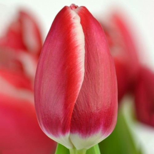 Представьте: плотные группы тюльпанов насыщенного вишнёво‑красного цвета, у каждого цветка чёткие серебристо‑белые края лепестков. Это не просто красивый весенний акцент – это визуальный эффект, который сразу привлекает внимание и задаёт настроение всему участку. Сорт Kung Fu из группы Триумф сочетает в себе эффектность окраски и надёжность: прочный стебель, крупный цветок, хорошая стойкость к неблагоприятной погоде.