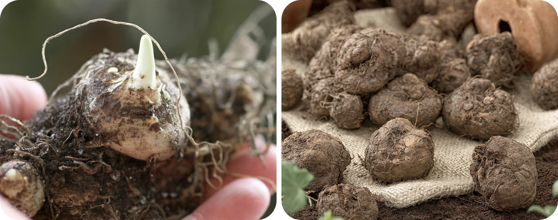 В нашем климате они не зимуют просто в земле: даже легкие морозы уничтожают клубни. Поэтому осенью, после того как листья пожелтели, клубни нужно осторожно выкопать. Их очищают от земли, удаляют поврежденные части, хорошо просушивают несколько дней и хранят в прохладном сухом месте при температуре +5...+8 °С. Удобнее всего держать клубни в бумажных пакетах или пересыпать опилками, песком или торфом, чтобы они не теряли влагу.