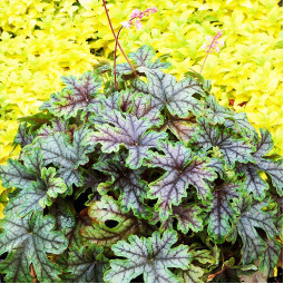- представників з плямистим листям, серед яких - дивовижний сорт Can Can з ніжними сріблястими плямами на тлі зелено-рожевого листя. Ця гейхеря, купити яку за оптимальною вартістю можна у нас, стане прекрасним доповненням композиції, в якій присутні рослини пурпурового чи рожевого забарвлення;