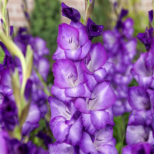 Гладіолус Великоквітковий Chemistry - суцвіття розміру ХХL. Фіолетові бутони гладіолусів зібрані по 20-25 штук у суцвітті до 75 см. Це дійсно величезний букет! Кожна квітка з сяючою білою серединкою досягає 15 см в діаметрі. Кеместрі не перестає дивувати навіть досвідчених флористів і ландшафтних дизайнерів. Великі квітки гладіолусів розміщують в останньому ярусі мікс-бортера. У компаньйони вибирають цинії, айстри, петунії, лобелії. У каталозі на сайті зібрано понад 100 сортів гладіолусів для реалізації Ваших ідей.