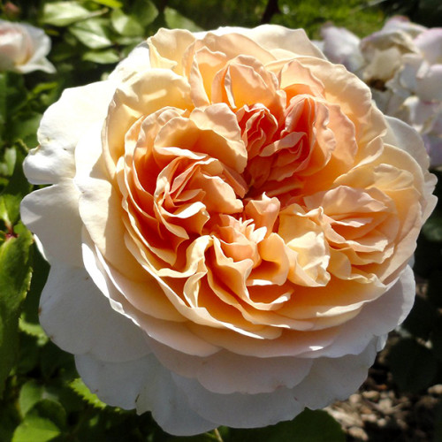 Троянда англійська Евелін (Evelyn) здатна по-справжньому здивувати надзвичайно великими бутонами в 1-у хвилю цвітіння - розміри квітки можуть досягати 16-18 см у діаметрі! А це сяюче світло-абрикосове забарвлення пелюсток з легким рожевим відтінком - квітка ніби світиться зсередини. Чудовий аромат гармонійно поєднує трояндову олію із запахом стиглих фруктів або легких парфумів - сорт один із найбільш запашних у лінійці англійських троянд. З кожним роком у міру дорослішання троянда набирає сили - кущ наростає, цвітіння його стає все більш рясним. Сорт ідеально підходить для аматорського вирощування - невибагливий, як і всі "остінки", добре росте і тішить око рясним цвітінням протягом усього сезону. Великий кущ троянди Евелін з красивими дугоподібними гілками ідеально підійде для солітерної посадки або в якості рослини 2-3-го плану парадного квітника.