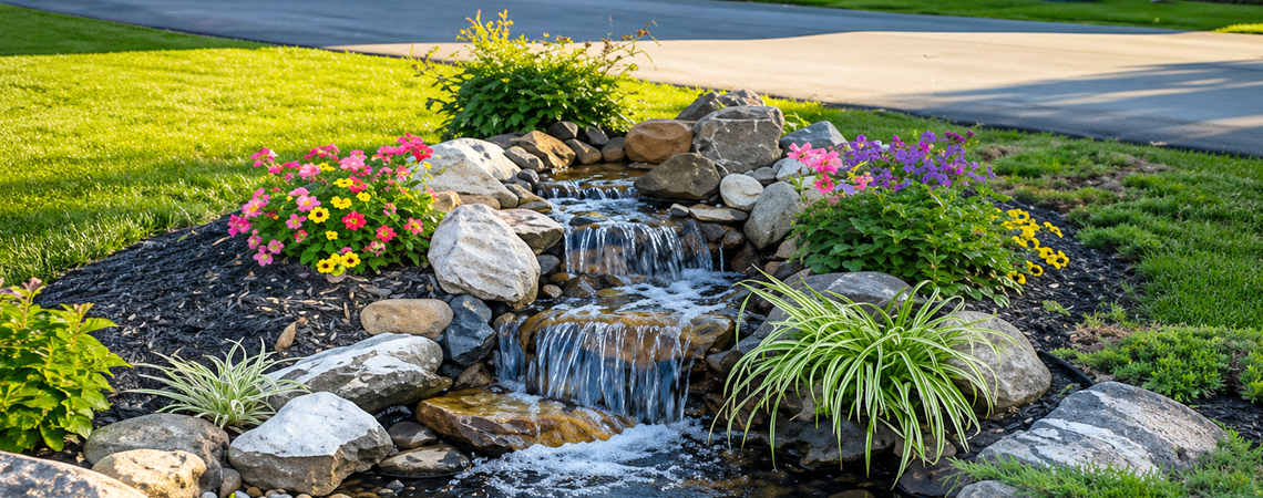 - Струмки та фонтани – чудово доповнюють ставки та озера, і можуть бути самостійними елементами ландшафтного дизайну.