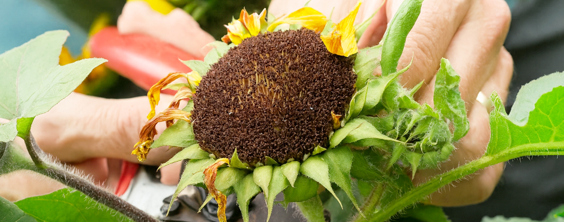Щоб насіння не обсипалось і не запліснявіло, кошики зрізають, коли вони підсохнуть приблизно на 70-80%. Потім їх підвішують у сухому, добре провітрюваному місці для остаточного підсушування. Після цього зернятка легко вимолочуються руками або тертям об тверду поверхню.
